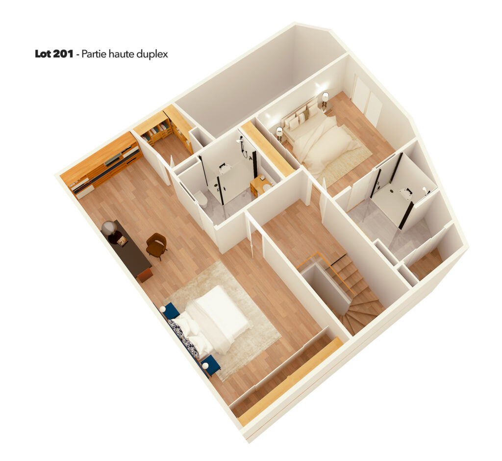 - Chauffage et rafraîchissement des logements assurés par un système gainable et par des unités intérieures murales en applique dans les chambres